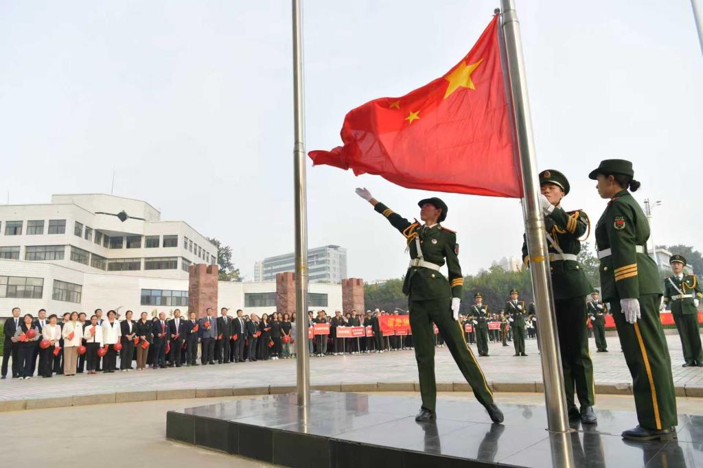 10月1日清晨,河北大学举办“青春向党 奋斗报国”主题升旗仪式,共庆中华人民共和国成立76周年。学校党委常委、副校长张锋出席升旗仪式。党委学生工作部、部分学院学生工作负责人及师生代表500余人参加了活动。