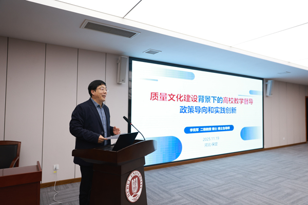 “质”守初心,“文”蕴内涵,构建‘五自’大学质量文化。2025年11月1日至30日,河北大学“本科教学质量文化月”活动成功举办。活动设置“名师面对面”“专业建设与专业认证”“评估督导与持续改进”“教师教学能力提升”“校园文化与学风建设”5个模块、18项活动,涵盖名师讲座、沙龙研讨、成果展示、微课堂等多种形式。