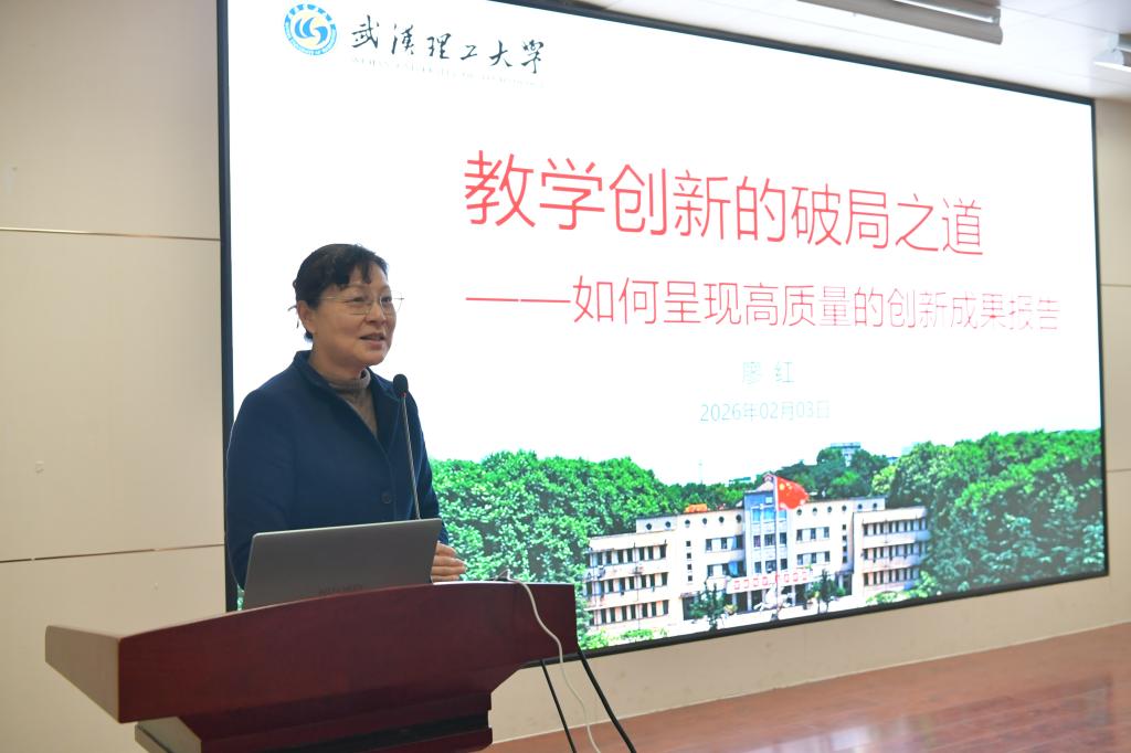 武汉理工大学廖红教授围绕破题、筑基、呈现、进阶四个关键环节,以《教学创新的破局之道—如何呈现高质量的创新成果报告》为题作报告。强调要深入解读大赛评审与标准,科学选择赛道、梳理素材;要厘清主线,搭建好教学创新报告的整体结构;要聚焦核心,精心打磨教学创新成果报告的内容与表达。