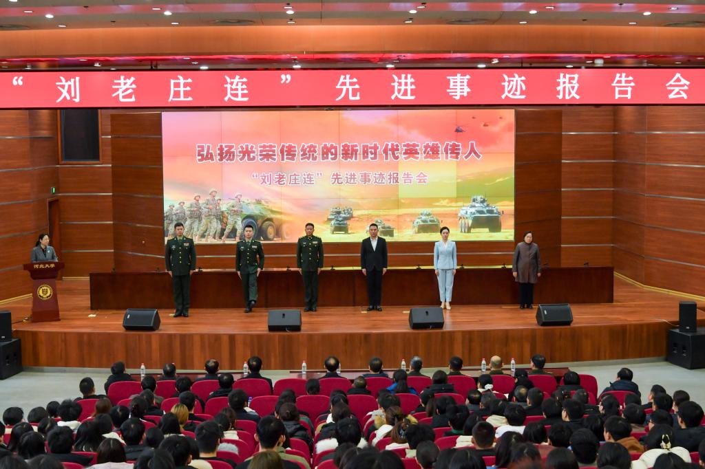 2026年1月9日,“时代楷模”陆军某合成旅合成二营装甲步兵一连(“刘老庄连”)先进事迹报告会在河北大学举行。保定市党政机关及社会各界代表、河北大学师生500余人参加报告会。