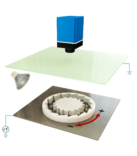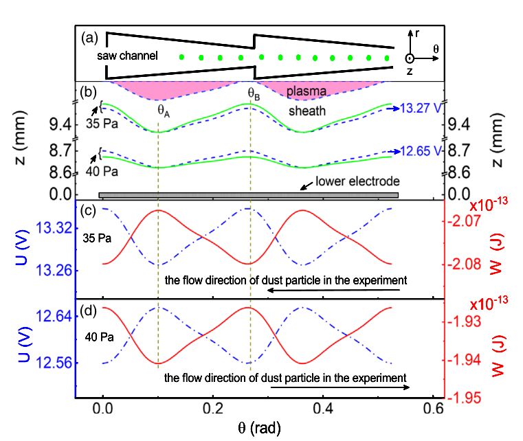 图:尘埃等离子体棘轮实验装置图与尘埃颗粒整流物理图像