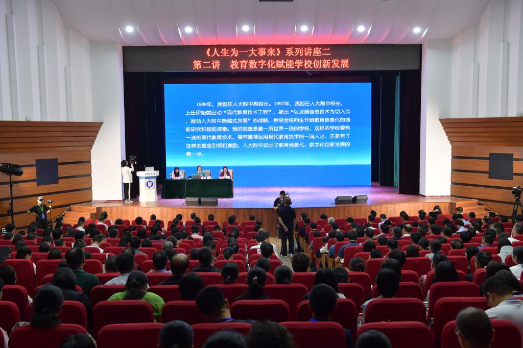 本场讲座为《人生为一大事来》系列讲座第二讲,主题为“教育数字化赋能学校创新发展”,主要介绍了人大附中信息化发展的历史特点,以及教育数字化着眼于未来、赋能课程改革与创新等方面,系统阐释了教育数字化对于学校创新发展的重要意义。现场四位人大附中的专家分享了人工智能等学科创新发展与个人成长的心路历程,充分展现了教育信息化的创新研究和超前探索。系列讲座共分为两场,7月16日上午,刘彭芝会长带来了系列讲座第一讲,主题为“科技创新教育解放学生和教师”的讲座。主要介绍了人大附中科技创新教育白手起家的奋斗历程,并从科技创新教育走进课堂、科技创新教育为拔尖创新人才奠基等角度进行了观念分享。讲座通过理论引领和案例分享相结合的方式展开,并邀请到了人大附中三亚学校校长宓奇及人大附中优秀毕业生代表田勤政、贺虎等人上台分别从不同角度对科技创新教育带来的重要性进行了生动阐释。