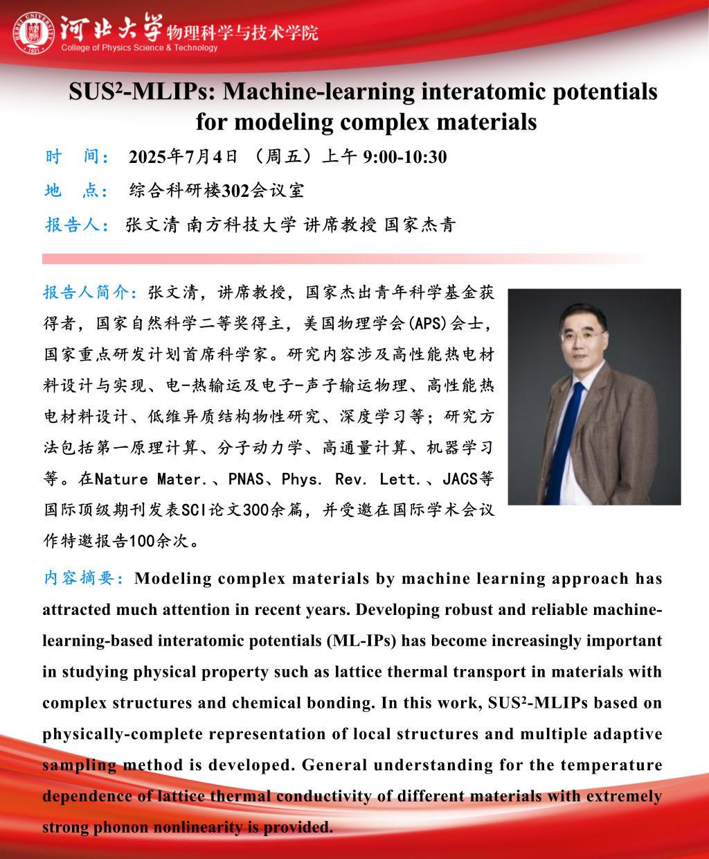 主讲人:南方科技大学讲席教授、国家杰青张文清