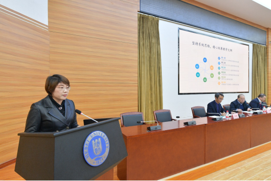 1月12日,我校在五四路校区主楼304报告厅,召开2021-2022学年秋学期第三次本科教学工作例会。学校党委副书记杨立海,党委常委、副校长孟庆瑜出席会议,并分别为获奖单位、获奖教师颁发奖牌和获奖证书。