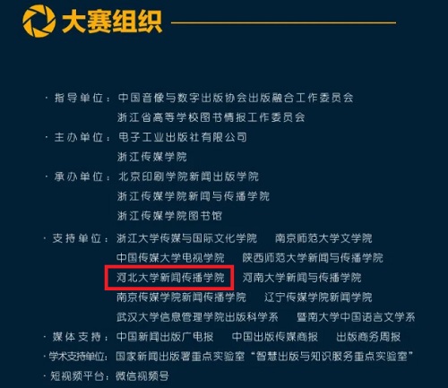以赛促学,联系浙江传媒学院和电子工业出版社,作为支持单位共同发起了第二届“为你读一本好书”校园短视频大赛。组织学生分组,及时上报书目,并把作品同时作为平时作业加以评分,推选优秀作品代表学院参赛。这样一来,就让学生们有了比较活跃的专业参与感,鼓励学生针对任何在参赛过程中产生的问题进行提问,并协助联系主办方进行协调解决。
