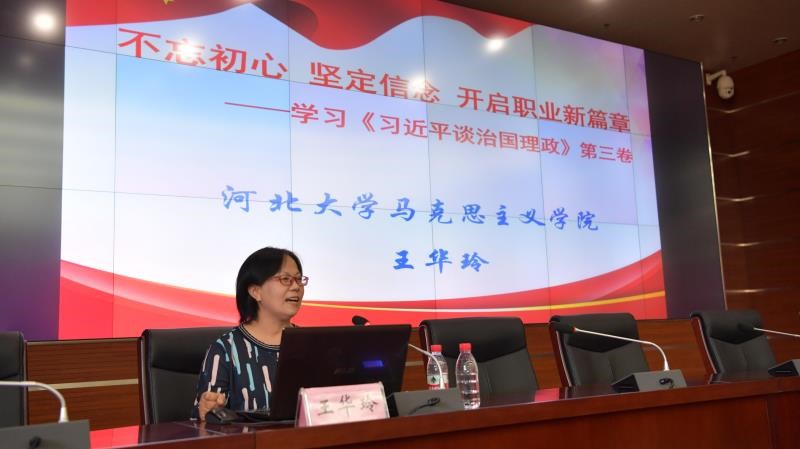 马克思主义学院王华玲、郑立柱两位教授分别以《不忘初心、坚定信念,开启职业新篇章——学习《习近平谈治国理政》第三卷》和《深入学习“四史”,坚守初心使命》为题,围绕习近平总书记关于教育的重要论述、“四史”学习展开精彩授课,内容充实生动,有效推动了新教师从中汲取共产主义信仰的崇高力量,促进新教师不断提升党性修养。
