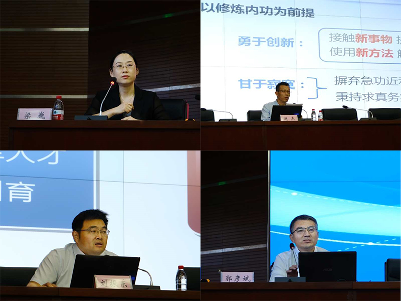 党委学生工作部部长梁巍、发展规划处处长赵杰、人事处处长刘振东、财务处处长郭彦斌讲解学校政策。