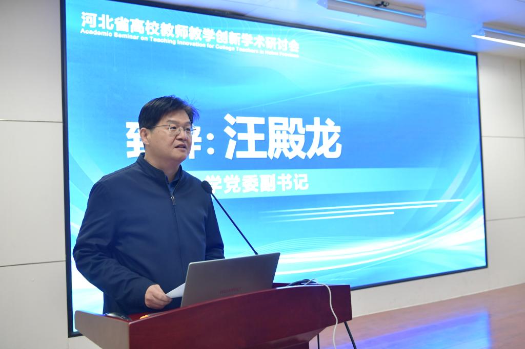 河北大学党委副书记汪殿龙出席会议并致辞。汪殿龙对研讨会的召开表示祝贺,期待与会人员在思想碰撞中凝聚共识、在案例分享中互学互鉴,切实将研讨成果转化为推动我省高等教育高质量发展的强大动力。他介绍了河北大学在激励教师教学创新方面的举措和成效,并表示将全力以赴做好会议服务和保障工作。